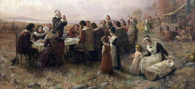 Το πρώτο, λοιπόν, Thanksgiving ήταν εκείνο το γεύμα που μοιράστηκαν οι ιθαγενείς της Αμερικής με τους Ευρωπαίους αποίκους στο Plymouth της Μασαχουσέτης το Νοέμβρη του 1621, και αρκετά αργότερα (το 1863) καθιερώθηκε από τον Αβραάμ Λινκολν ως επίσημη εθνική γιορτή.