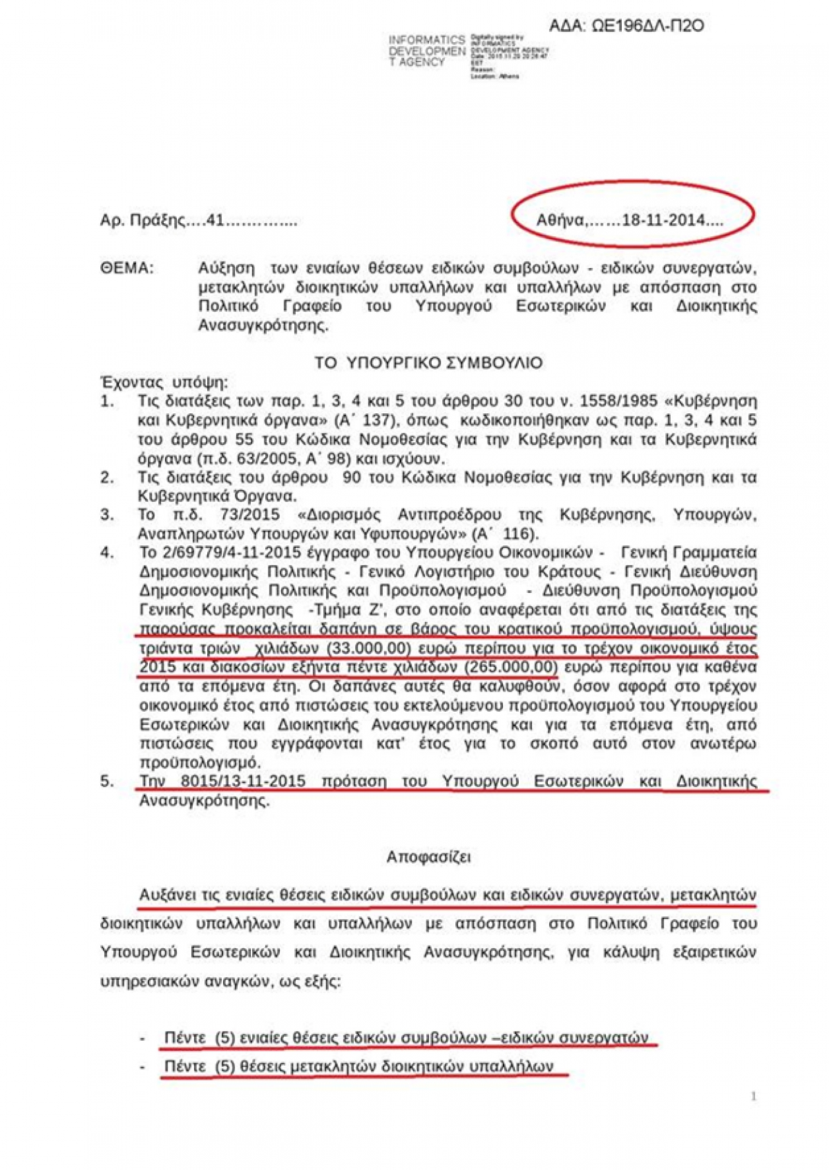 ΤΟΥ "ΣΥΝΤΡΟΦΟΥ" Παναγιώτη ΚΟΥΡΟΥΠΛΗ Ο ΟΠΟΙΟΣ ΖΗΤΗΣΕ 10 ΕΠΙΠΛΕΟΝ ΑΤΟΜΑ ΣΤΟ ΓΡΑΦΕΙΟ ΤΟΥ ΩΣ ΜΕΤΑΚΛΗΤΟΥΣ ΚΑΙ ΩΣ ΕΙΔΙΚΟΥΣ ΣΥΜΒΟΥΛΟΥΣ.