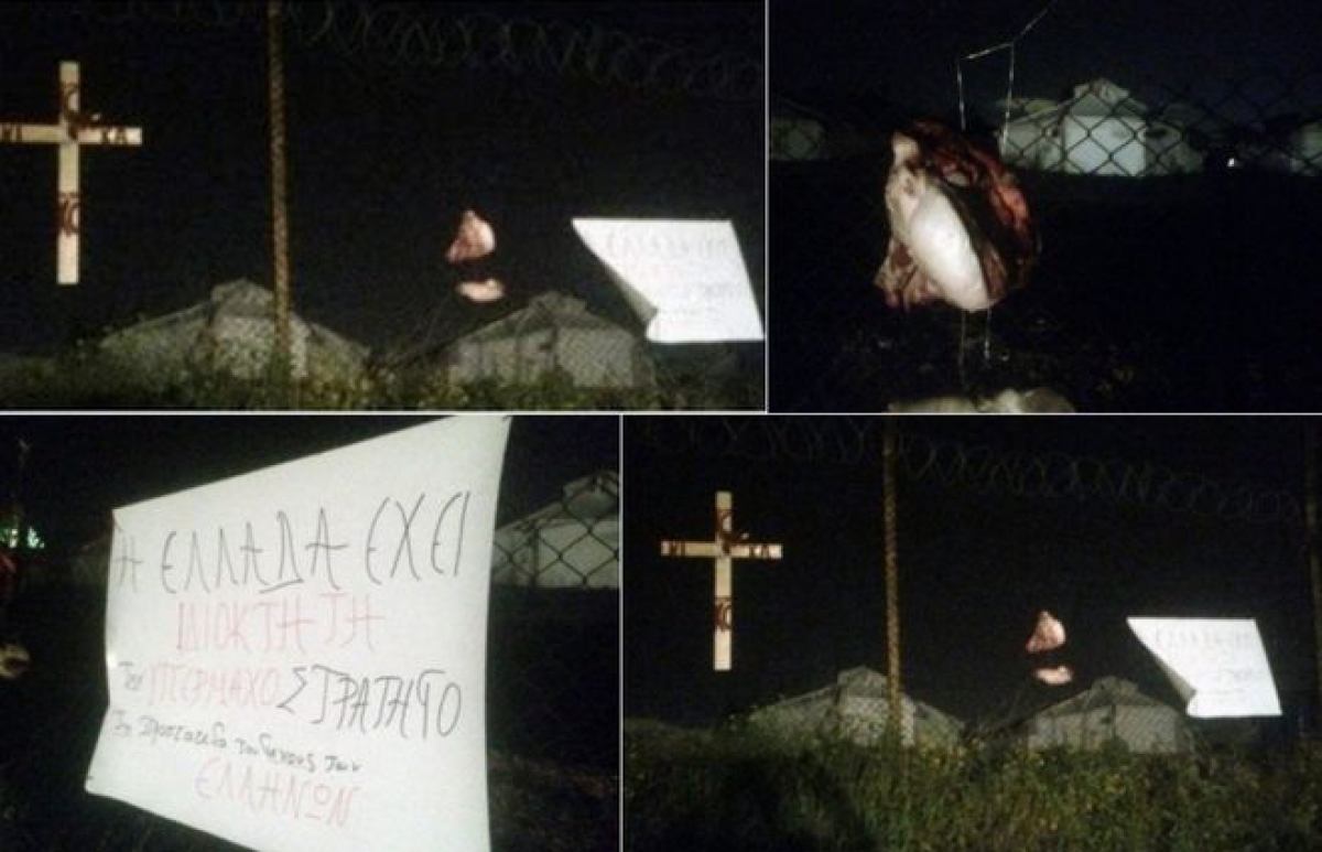 Το κρέμασμα γουρουνοκεφαλής σε χώρους φιλοξενίας προσφύγων είναι κάτι που έχει παρατηρηθεί σε πολλά ευρωπαϊκά κράτη τα οποία φιλοξενούν μουσουλμάνους πρόσφυγες τα τελευταία χρόνια. Οι φωτογραφίες αναρτήθηκαν στο Twitter χθες το βράδυ.
