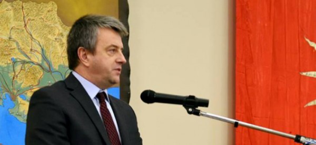 Ο εικονιζόμενος στην φωτογραφία είναι ο πρέσβης των Σκοπίων στον Καναδά σε πρόσφατη ομιλία του.