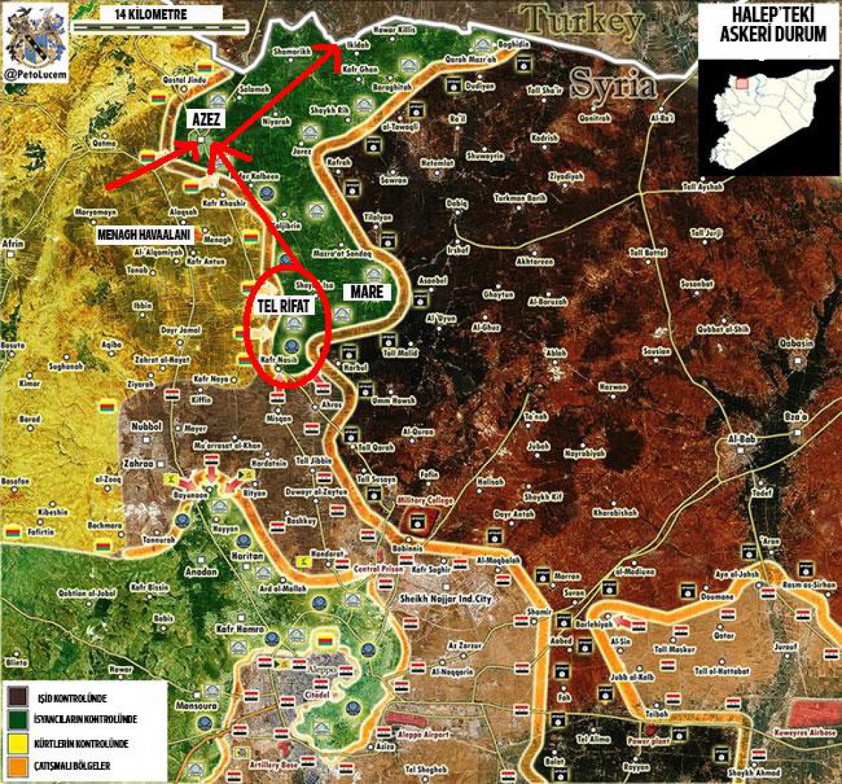 Ήδη οι Κούρδοι με την ρωσική καθοδήγηση έχουν καταλάβει την πόλη Tel Rıfat και έτσι έχει κλείσει ο κλοιός γύρω από το Azez, ενώ στην κατάληψη της συνέβαλλαν αποφασιστικά τα ρωσικά άρματα μάχης
