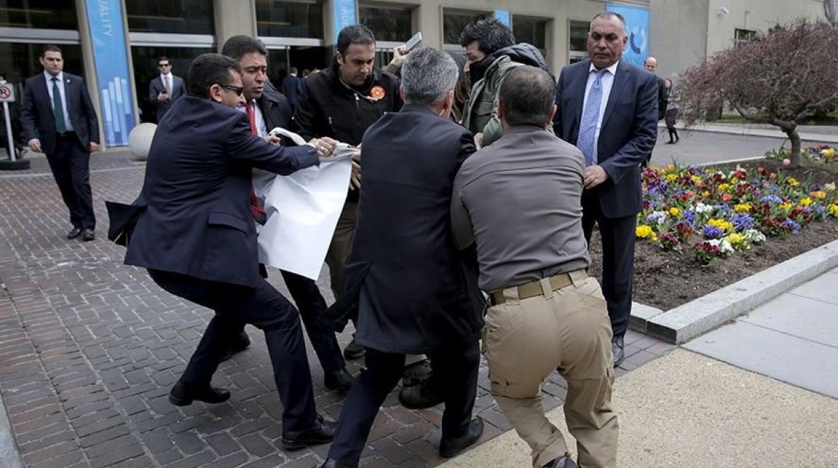 Σωματοφύλακες του Ρετζέπ Ταγίπ Ερντογάν επιτέθηκαν σε διαδηλωτές που φώναζαν συνθήματα υπέρ των Κούρδων και εναντίον του Τούρκου προέδρου στην Ουάσιγκτον, κοντά στο κτίριο Brookings.