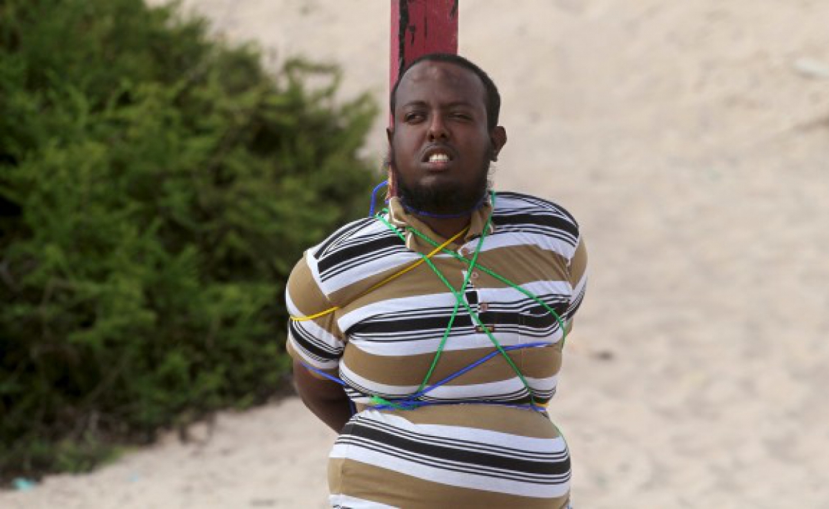 Σκληρές εικόνες από την εκτέλεση του 30χρονου Hassan Hanafi απαθανάτισε ο φωτογραφικός φακός. Είχε καταδικαστεί για τη δολοφονία 5 δημοσιογράφων και σκοτώθηκε από το εκτελεστικό απόσπασμα στη Σομαλία.