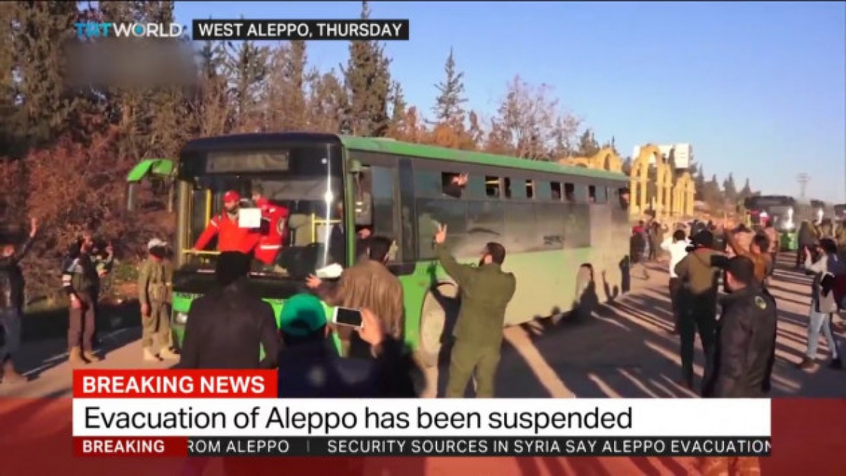 Αλλά για άλλη μια φορά, τα πυρά σταμάτησαν τη διαδικασία της εκκένωσης. Μαζί με τους πολίτες, φεύγουν από το Χαλέπι και αντάρτες στους οποίους το καθεστώς Άσαντ έχει υποσχεθεί αμνηστία. Μόνο που δεν φεύγουν όλοι. Κάποιοι αρνούνται να παραδώσουν τα όπλα και οι μάχες συνεχίζονται.