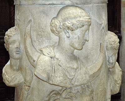 Η Σελήνη συνοδευόμενη από τους Διόσκουρους Φωσφόρο και Έσπερο.