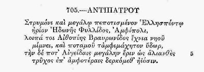 Ο κ. Αντόνιο Κόρσο, Ιταλός αρχαιολόγος και ιστορικός τέχνης, ειδικευμένος στην αρχιτεκτονική και αρχαιολογική γλυπτική, σε μια πολύ αποκαλυπτική του συνέντευξη στο Πρώτο Θέμα (http://www.protothema.gr/culture/article/456261/amfipoli-o-tumvos-oi-delfoi-kai-i-dunasteia-ton-timenidon/ ) έχει αναφερθεί στο επίγραμμα του Αντιπάτρου του Θεσσαλονικέως ο οποίος έζησε τον 1ο αι. μ. Χ. την εποχή του Ρωμαίου αυτοκράτορος Αυγούστου. Ο Αντίπατρος μας παραδίδει τη σημαντική μαρτυρία του ότι εκείνη την εποχή στην Αμφίπολη εσώζοντο μόνο το Ηρώο της βασιλοπούλας Φυλλίδος και τα ελάχιστα κατάλοιπα του ναού της Αιθιοπίας Βραυρωνίδος Αρτέμιδος. Η Αιθιοπία Άρτεμις όμως σύμφωνα με τον Καλλίμαχο ταυτίζεται με την Σελήνη: «…την αυτήν τη σελήνη παρά το αίθειν, ως Καλλίμαχος (λέγει)», σύμφωνα δε με τον Ερατοσθένη ταυτίζεται με την Εκάτη : «…η αυτή έστι η Εκάτη, ήτις αεί δάδας κατέχει, ως Ερατοσθένης (λέγει)».