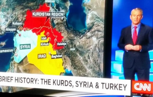 Ας μην λησμονούμε όμως πως το CNN από τον Οκτώβριο του 2014 έδειξε στους Αμερικανούς πολίτες ποιο είναι το Κουρδιστάν. Μια κίνηση που δείχνει καθαρά την τακτική των Αμερικανών στην περιοχή.