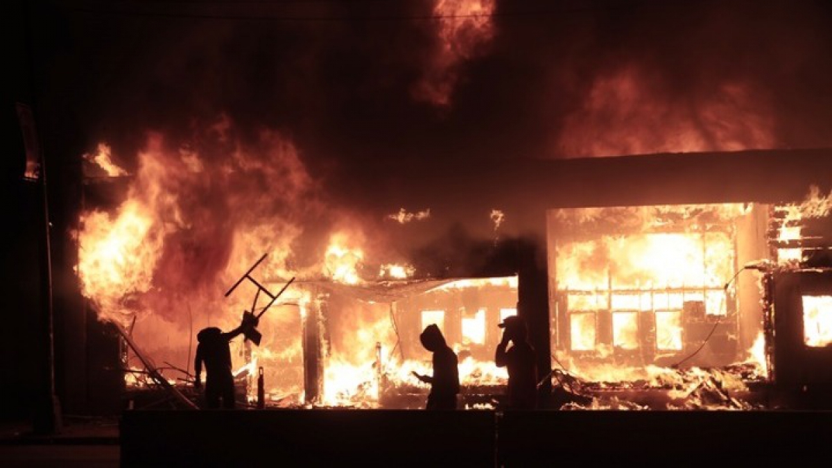 Όταν βρέθηκαν αντιμέτωπες με επίθεση κατά μέτωπο των διαδηλωτών, οι δυνάμεις επιβολής της τάξης εγκατέλειψαν το κτίριο, γύρω στις 22:00 τοπική ώρα. Ορισμένοι διαδηλωτές πέρασαν τα κιγκλιδώματα που είχαν τοποθετηθεί, έσπασαν παράθυρα κι έβαλαν φωτιά στο αστυνομικό τμήμα.