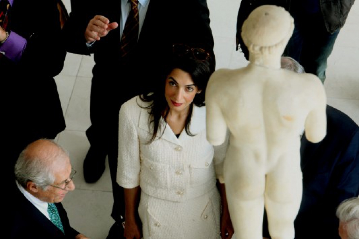 Μόλις μια εβδομάδα μετά τον γάμο της με τον Τζορτζ Κλούνεϊ, η πλέον φωτογραφημένη δικηγόρος επισκέφθηκε την Αθήνα για να συνδράμει στις προσπάθειες που κάνει η ελληνική κυβέρνηση να πάρει πίσω τα Μάρμαρα από το Βρετανικό Μουσείο.
