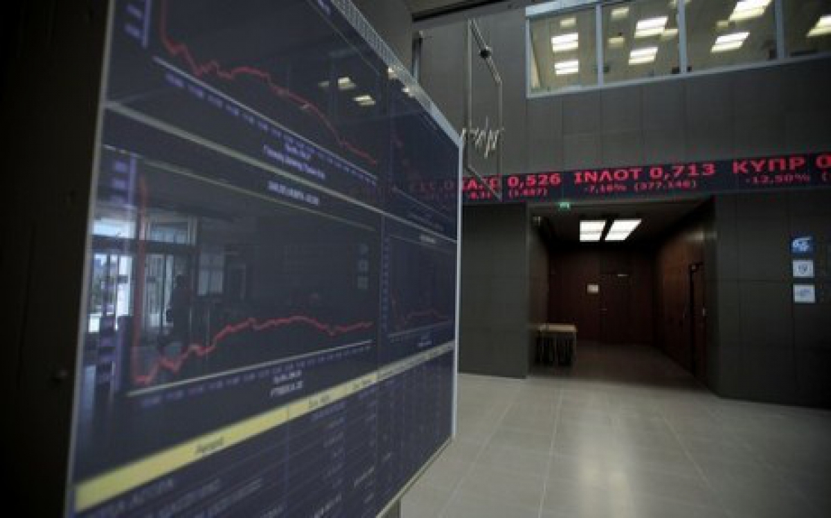 Συνεχίζεται το ανελέητο σφυροκόπημα στο Χρηματιστήριο. Ο Γενικός Δείκτης σημειώνει λίγο μετά τις 16:00 ραγδαία πτώση που ξεπερνά το 7%, ενώ νωρίτερα οι απώλειες είχαν ξεπεράσει ακόμα και το 10%.