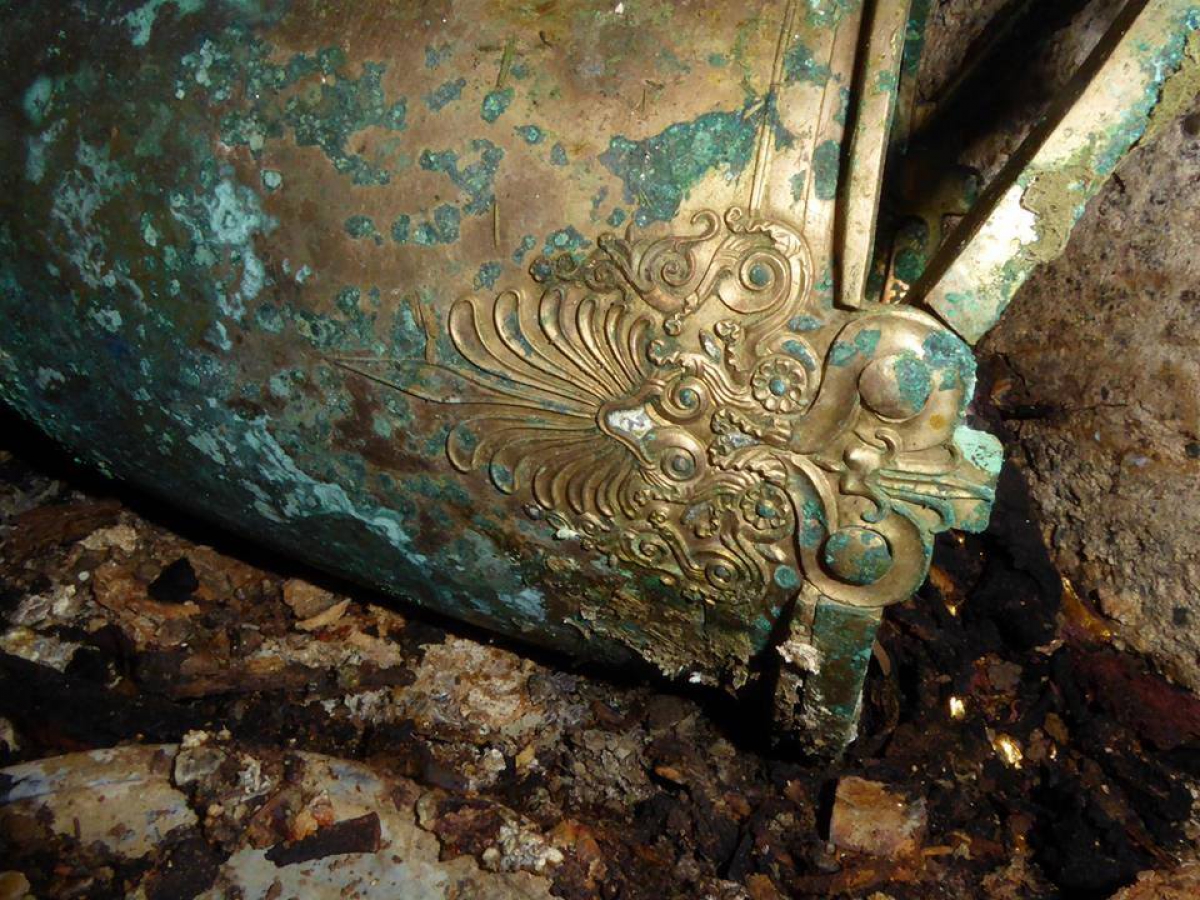 «Σήμερα αντικρίσαμε τον κάδο (σκεύος συμποσίου στο οποίο ανακάτευαν τον οίνο με νερό) στη θέση που βρέθηκε, πεσμένος στο δάπεδο του τάφου.... τα διάφορα "σκουπίδια" που φαίνονται γύρω του είναι υπολείμματα από οργανικά υλικά, ξύλα . που σχετίζονται με το ανάκλιντρο του νεκρού» περιγράφει η επικεφαλής των ανασκαφών Αγγελική Κοταρρίδη.